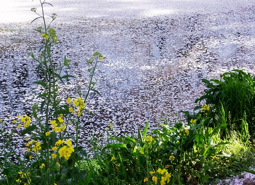 川面を埋める桜の花びら・・・桜の花をほんのり赤くの方法で、少しだけ色味を強調しています。↓↓↓