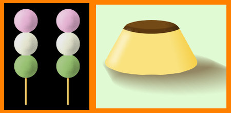 AzPainter2レストラン用のネタに、お花見団子とプリンをとりあえず描いてみました。