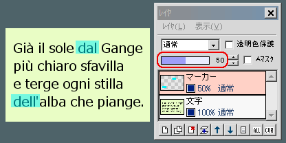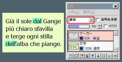 (ただしこの場合は、キャラの部分が黒になるので、アルファ操作は「下のレイヤの輝度を反転コピー」になります)