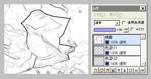 白い紙に描いた線画をスキャンしたり、白背景に黒などで描いた線画に色を塗りたいが、塗った色で線が隠れてしまい困っている・・・という質問がよくあります。