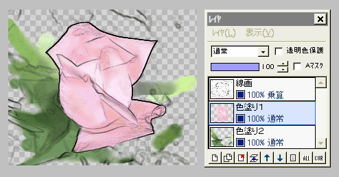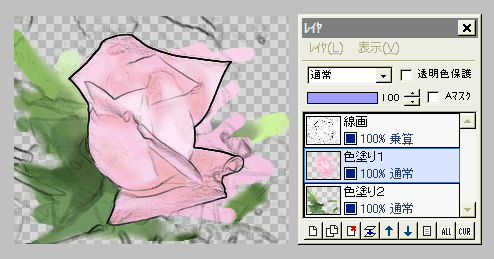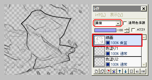 「乗算」の詳しい理論?はともかく、「線画に色を塗る」描き方をする場合に、覚えておくと便利な方法です。