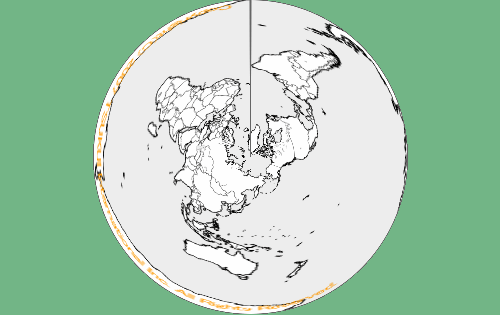 北極から見たような地図に変形しましたね。