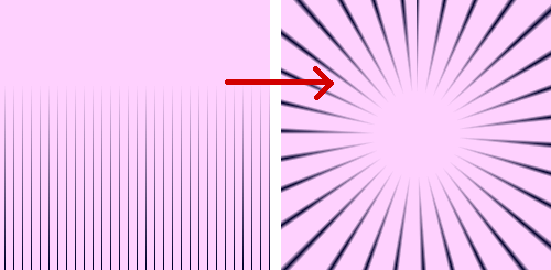 下左の画像に極座標を使うと、右のような集中線になるのも理解できますよね。