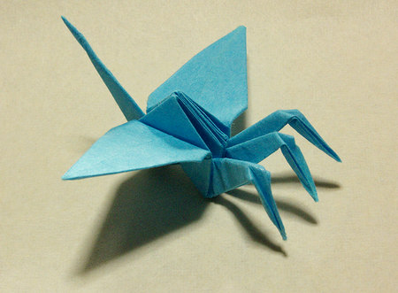 首が三つあるこの不気味な鶴、前川淳著「本格折り紙」という本に、折り図が載っています。