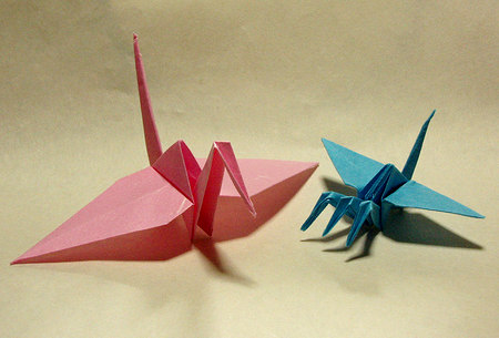 実はこの鶴、同じ大きさの紙で折った普通の鶴よりも、かなり小さくなります。