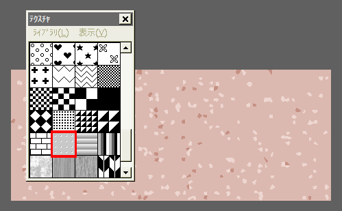 全体を1色で塗りつぶしてから、別の色を描画色にして、今度は赤枠のテクスチャをONにして塗りつぶします。