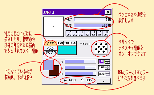 この他に、任意に切り抜いたカラー画像をスタンプ描画できる、「Image Hose」という機能も付いています。