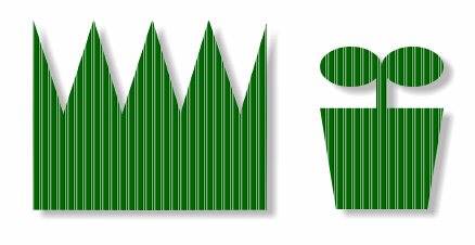 左は、「連続直線+塗りつぶし」で作った形で切り抜いたもの、右はシルエット風の絵フォントで切り抜いたものです。