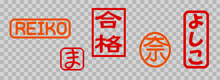 文字と枠を、別レイヤに描画してから位置合わせをすると、簡単にバランスの良いハンコ&落款風の画像が作れます。