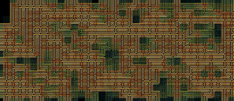 できた画像に、「エンボス」(強さ1~2程度、好みで「反転」にチェック)を実行すると、凹凸ができて配線の基盤?みたいになります。